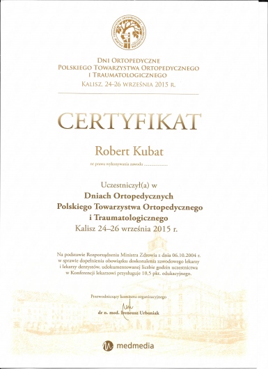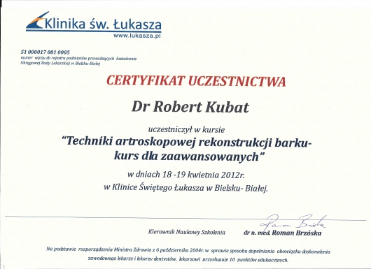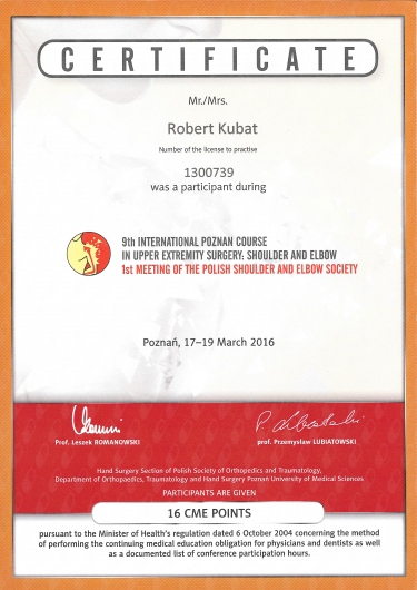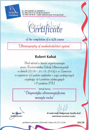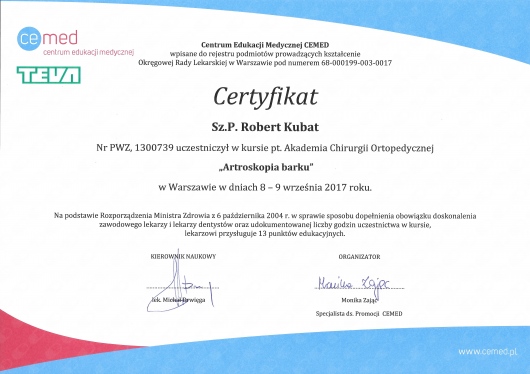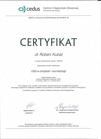 Urazy kończyn górnych i dolnych, urazy sportowe, artroskopia stawu kolanowego z leczeniem rekonstrukcyjnym więzadeł i chrząstek, alloplastyka stawu kolanowego i biodrowego, chirurgiczne leczenie schorzeń stawu ramienno - łopatkowego metodą otwartą, artroskopia stawu skokowego, chirurgia ręki z leczeniem rekonstrukcyjnym, zespół cieśni nadgarstka, operacje plastyczne deformacji rąk (przykurcz Dupuytrena, ręka reumatyczna, torbiel galaretowata, choroba de Quervaine'a, pourazowe uszkodzenia nadgarstka - kości i więzadeł, uszkodzenia ścięgien, niestabilność stawów ręki) i stóp (palce młoteczkowate, paluch koślawy, pieta Haglunda, pourazowe uszkodzenia ścięgien, kości oraz niestabilność stawu skokowego), operacyjne leczenie biodra trzaskającego u dorosłych, profilaktyka i leczenie dysplazji stawów biodrowych u niemowląt. Wykonuję iniekcje z preparatów kwasu hialuronowego - dostawowe seryjne i tzw One Shot, okołościęgniste - osocza bogatopłytkowego ( PRP, Fibryna, Sanakin). W trakcie wizyty jest możliwość wykonania badania USG narządu ruchu wysokiej klasy aparatem USG firmy General Electric